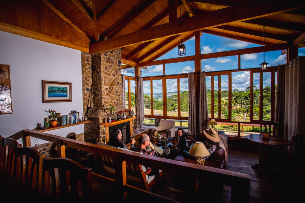 O Casarão é nossa casa mais completa , inspirada na Arquitetura dos Lodges da Patagoniza, sua estrutura possui Espaço Gourmet com forno à lenha e churrasqueira, ampla sala com lareira cuidadosamente decorada, sala de jogos com pebolim, sala com sinuca, sala de jantar, cozinha equipada com  conceito aberto, além de piscina exclusiva e um lindo quintal com espaço para fogueira e pergolado com redário.